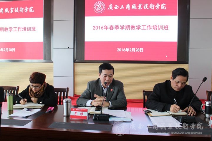培訓(xùn)班首先由教務(wù)科研處韋勝強(qiáng)處長對2016年度教學(xué)、科研、招生工作進(jìn)行了布置。韋處長主要從加強(qiáng)服務(wù)社會能力,突出教學(xué)中心地位,更加規(guī)范教學(xué)管理工作、突出人才培養(yǎng)改革創(chuàng)新,不斷提升教學(xué)質(zhì)量,進(jìn)一步優(yōu)化教師隊(duì)伍結(jié)構(gòu),加強(qiáng)校企合作,深化產(chǎn)教深度融合,加大科研工作力度等方面對2016年教學(xué)工作目標(biāo)與任務(wù)進(jìn)行了闡述。
