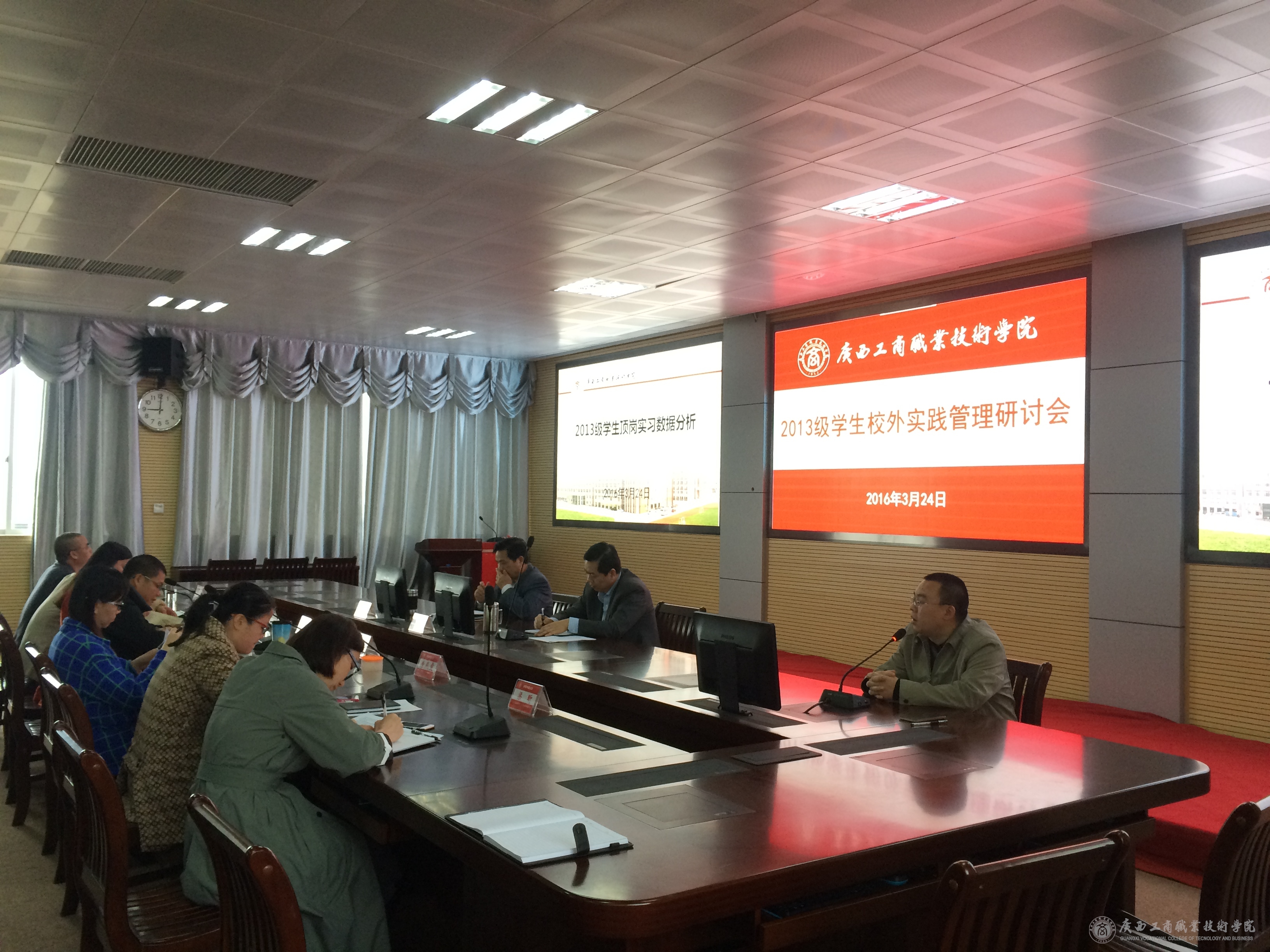 2016年3月24日上午,教務(wù)科研處處長韋勝強在校本部2119會議室主持召開了2013級學(xué)生校外實踐管理研討會,學(xué)院李維副院長、黨委學(xué)生工作部及各系部相關(guān)負責(zé)人,教務(wù)科研處有關(guān)人員出席了會議。