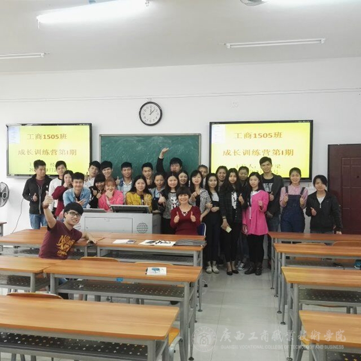 2016年3月22日上午11點在2017教室舉辦了班級成長訓練課堂的第一期,組織委員樓定梁同學主持該次活動,韋曉明、李瑋、李妙、黃秀紅、黃希霞五位同學作為第一批訓練學員。班主任李水球老師、班長余贛斌、學習委員秦玉梅、宿管委員韋柳溪、心理委員甘文廣擔任評委及其他十余位同學參與了此次訓練課堂活動。