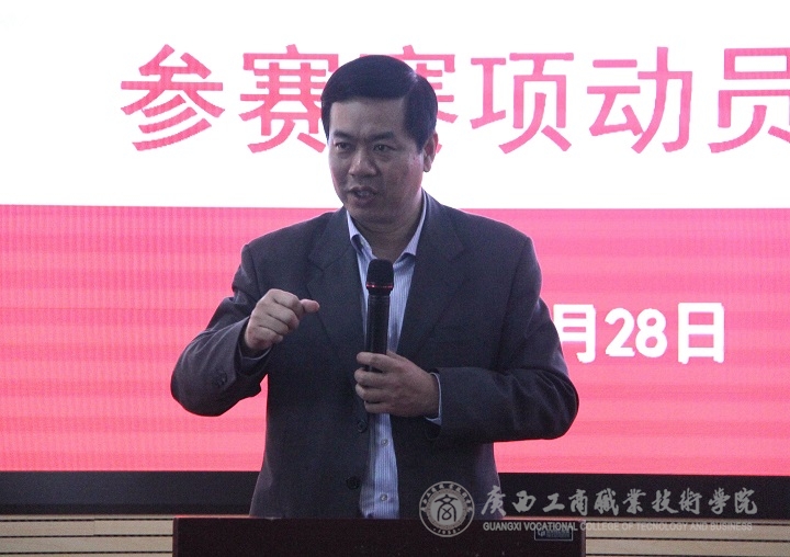 3月28日下午4時30分,我院在校本部教學(xué)樓2119會議室召開2016年廣西職業(yè)院校技能大賽參賽賽項(xiàng)動員會。學(xué)院李維副院長、教務(wù)科研處、會計(jì)系、經(jīng)管系、財(cái)信系、公共基礎(chǔ)部等相關(guān)部門領(lǐng)導(dǎo)、各技能大賽項(xiàng)目參賽隊(duì)指導(dǎo)教師和參賽學(xué)生參加了本次會議,會議由教務(wù)科研處處長韋勝強(qiáng)主持。