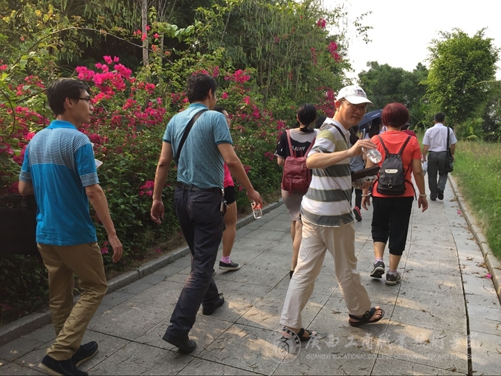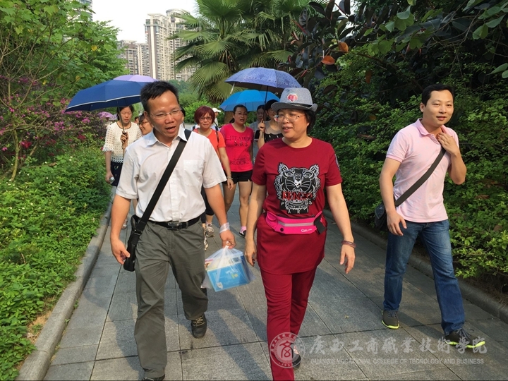 艷陽(yáng)普照,暑意正濃。2016年5月4日下午16:10,廣西工商職業(yè)技術(shù)學(xué)院全體教職工在學(xué)院校本部一同出發(fā)前往相思湖濕地公園開(kāi)展“享健康 跟我走”徒步尋寶活動(dòng),學(xué)院黨委副書記蒙啟成參與到“尋寶”隊(duì)伍中,共有70人參加了本次活動(dòng)。