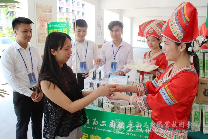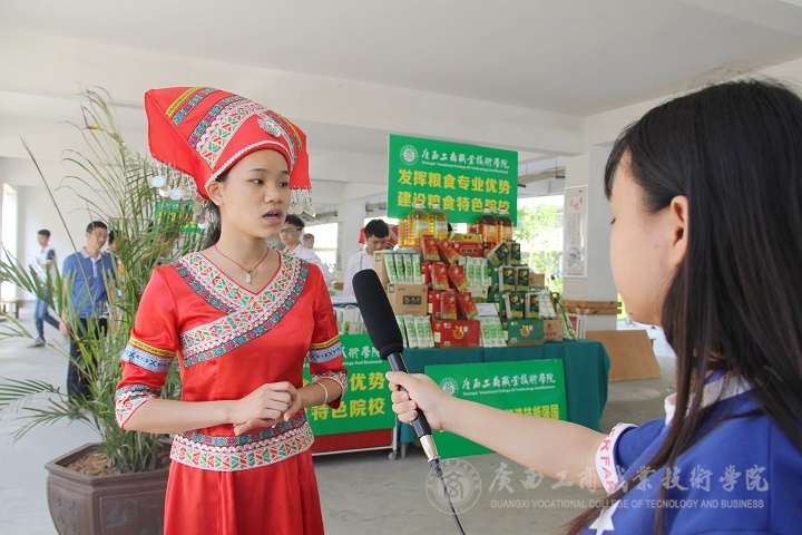 現(xiàn)場還有財(cái)信系廣告與設(shè)計(jì)、食品檢測專業(yè)展出的糧食加工與包裝設(shè)計(jì)作品展。食品檢測專業(yè)的同學(xué)向大家展示了既營養(yǎng)又安全的面包、紅酒、餅干,廣告與設(shè)計(jì)專業(yè)的同學(xué)向大家展示了以五谷雜糧為主要材料的圖畫。尤具特色的是:活動(dòng)中呈現(xiàn)的全部作品都是由學(xué)生們親手制作?,F(xiàn)場接受采訪的同學(xué)告訴記者,同學(xué)們參加此次活動(dòng)是為了響應(yīng)國家的號召,展示我院食檢專業(yè)的技能特色,她們表示:廣西區(qū)很多院校的職業(yè)技能展示以及發(fā)展的程度,跟國際上還有一定的差距,大家決心要繼續(xù)努力,將食檢專業(yè)的技能發(fā)展得更好。