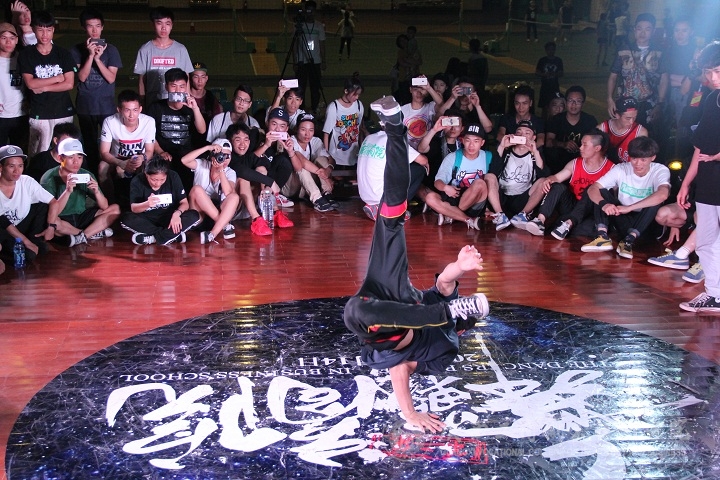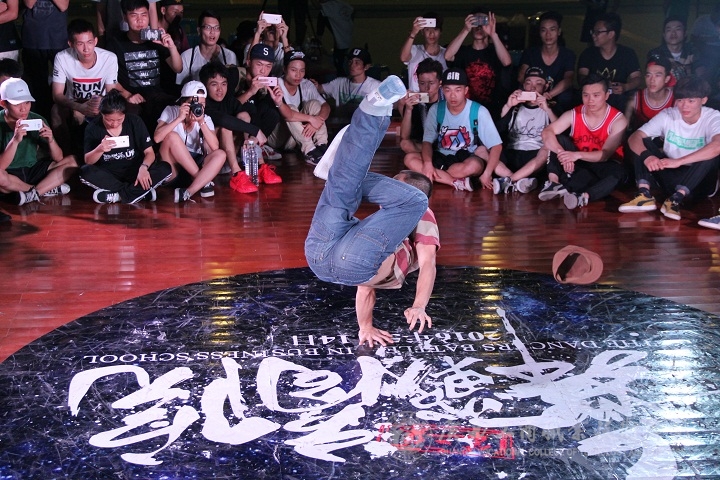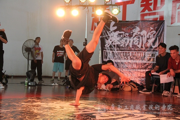 2016年5月14日14:00,我院本部文體館二樓舞臺上下人頭攢動、燈光璀璨,由我院共青團委員會主辦、院街舞社承辦的第二屆“舞戰(zhàn)商院”街舞大賽在此舉行。南寧各大高校街舞社紛紛前來參賽,并與同學(xué)們一同欣賞了此次比賽。本次大賽共有五個項目,以斗舞的形式進(jìn)行,分別為:高校嘉賓賽(7 to smoke)、全部舞種賽(freestyle 3V3)、團體挑戰(zhàn)賽(breaking 5~7)、單人舞步賽(top rock 1V1)、單人技巧賽(power move 1V1)。
