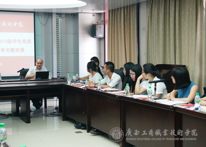 2016年5月7日,學院黨委書記覃武云同志率黨委組織部、黨委學工部、各系黨總支領(lǐng)導及黨務(wù)工作者一行7人前往廣西出入境檢驗檢疫局技術(shù)中心,與我院在該單位及其他在南寧市預就業(yè)的2013級學生黨員開展“兩學一做”學習教育專題黨課學習,并進行“講政治、有信念”專題學習討論。
