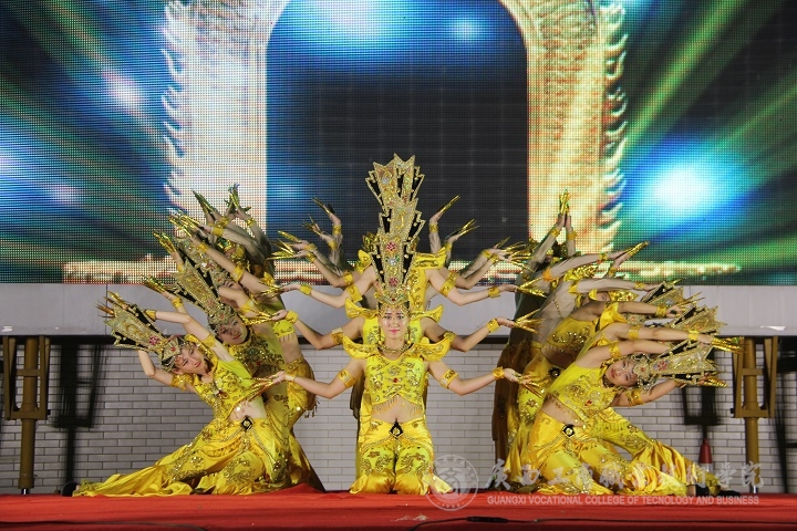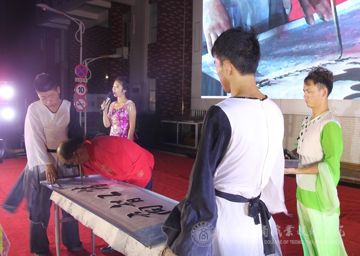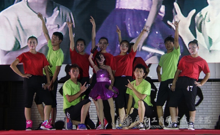 在主持人的介紹下,開(kāi)始了各具特色的精彩演出,舞蹈、演唱、樂(lè)器、口書(shū)、模仿秀、千手觀音這些表演無(wú)不牽動(dòng)著廣商院師生的心。游韌有余的演奏樂(lè)器嗩吶和演唱的勵(lì)志歌曲《我的未來(lái)不是夢(mèng)》讓振奮人心,精彩默契的雙人舞《鷹》,熱情的獨(dú)唱《我相信》和兄弟合唱《朋友》,柔美婉約的舞蹈《風(fēng)沙》,鏗鏘熱情的獨(dú)唱《載歌載舞》和歌舞演繹《荷塘月色》,極具高難度的藝術(shù)表演口書(shū)為廣商院獻(xiàn)出題字“精工智商”校訓(xùn),還有廣商院各系代表為藝術(shù)團(tuán)捐款環(huán)節(jié),更有盲人催人淚下的演唱《好人就在身邊》,聾啞人帶來(lái)曼妙多姿的舞蹈《魚(yú)》,還有大叔帶來(lái)熱情高漲的潮流舞蹈《江南style》,可愛(ài)的袖珍姑娘——甜甜為我們演唱了《隱形的翅膀》和《小蘋(píng)果》。現(xiàn)場(chǎng)觀眾感受到她帶給大家的熱情,將晚會(huì)的氣氛逐漸推到高潮!一重又一重驚喜的模仿秀惹得臺(tái)下笑聲一片以及給觀眾帶來(lái)激情澎湃的歌曲《怒放的生命》,讓人看完真是久久不能忘懷。
