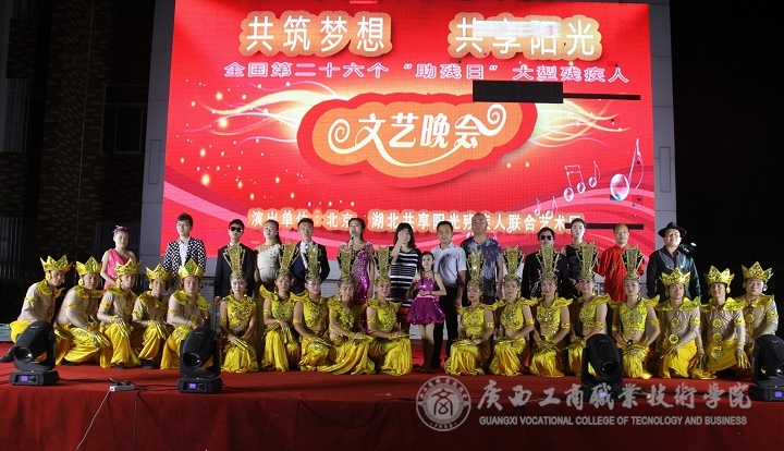 2016年5月19日晚19:40“殘聯(lián)文藝匯演”在校本部LED大屏幕下隆重舉行。本次殘藝晚會(huì)由北京、湖北共享陽(yáng)光殘疾人聯(lián)合藝術(shù)團(tuán)為我們帶來(lái)多元化的文藝匯演。本次匯演共有十三個(gè)節(jié)目,每一個(gè)節(jié)目都是由殘疾人獻(xiàn)給我們的精彩演出。此次匯演極具意義的晚會(huì),廣商院的師生們都積極活躍的參與其中,現(xiàn)場(chǎng)氣氛十分火熱。