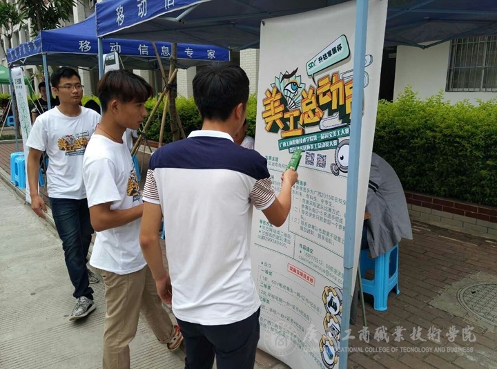 廣西財經(jīng)學(xué)院的宣傳工作在宿舍前的小廣場進行,受到該校同學(xué)們的廣泛關(guān)注,他們表示對本次活動很感興趣,很多同學(xué)都紛紛來到報名攤點前詢問比賽的報名方式以及比賽內(nèi)容。
