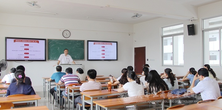 2016年6月3日下午,學院黨委副書記、紀委書記蒙啟成同志在我院校本部2207教室為黨員同志們上 “兩學一做”黨課。本次黨課主要圍繞深入學習、貫徹落實“兩學一做”展開。