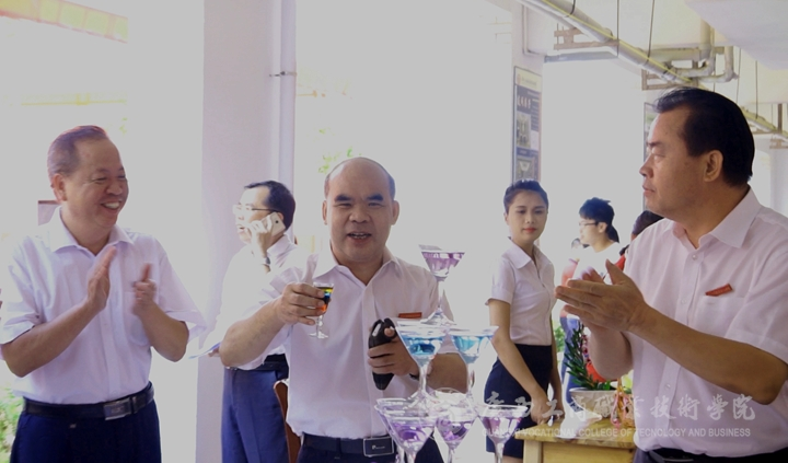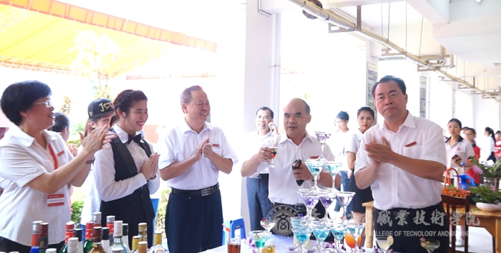 覃武云書記、陳杰院長、蒙啟成副書記、李仕欽副院長、黃永蓬副廳級調(diào)研員等一行人先后來到就業(yè)洽談會現(xiàn)場、學(xué)生畢業(yè)展演現(xiàn)場、教學(xué)成果展現(xiàn)場與用人單位、參展師生進(jìn)行了親切友好的交談。在學(xué)生的畢業(yè)設(shè)計(jì)展,覃武云書記豎起了大拇指,為學(xué)生們漂亮的參展作品點(diǎn)贊。在西餐展臺,覃武云書記舉起學(xué)子們現(xiàn)場調(diào)好的雞尾酒向現(xiàn)場師生問好。在板鞋教學(xué)展演現(xiàn)場,他甚至調(diào)皮的穿起了板鞋,與其他老師玩起了板鞋游戲。