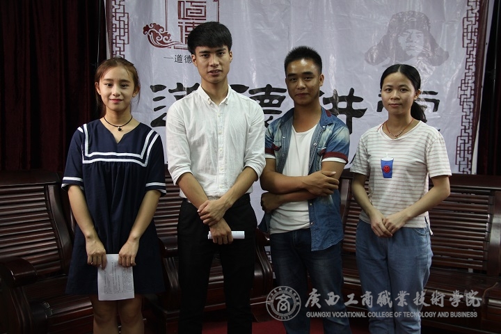 發(fā)揚(yáng)五四精神,為振興中華民族而努力奮斗。本期的道德講堂的主題是弘揚(yáng)中華美德,傳承五四精神。2016年6月17日晚19點(diǎn),廣商院道德講堂邀請了來自營銷1433班的肖涼丹、何宗澤、吳澤豪、韋滿、許景鋼、陳攀等六位同學(xué)。他們是一群拾金不昧的孩子們,他們的良好事跡受到失主和廣大師生的表揚(yáng),更值得大家學(xué)習(xí)和借鑒。