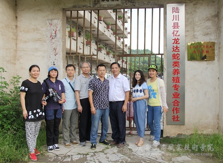 (慰問團隊在蛇類養(yǎng)殖處合影留念)