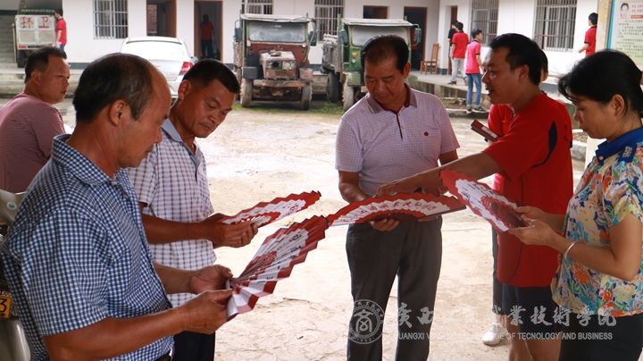 (李朝鋒書記向村干部介紹廣商院文化扇的來(lái)歷)