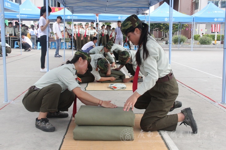 2016年9月28日9時,廣西工商職業(yè)技術(shù)學(xué)院新生軍訓(xùn)疊軍被內(nèi)務(wù)大賽在學(xué)院籃球場拉開帷幕。