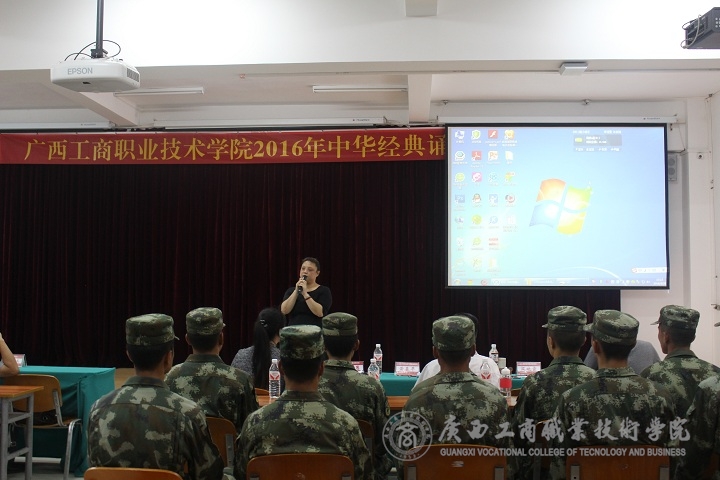 “詩的語言,典藏著五千年悠久的歷史文化;詩的聲音,演繹著不朽歷史的風(fēng)骨鏗鏘”。2016年9月28日下午,廣商院“中華經(jīng)典誦讀”比賽在院本部2145報(bào)告廳拉開帷幕。蒙啟成副書記親臨現(xiàn)場與各部門、系部的老師以及受邀到學(xué)院指導(dǎo)軍訓(xùn)的部分教官觀看了本次比賽。