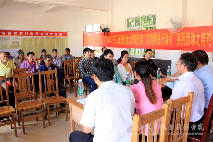 在那若村村委會(huì),我院推薦,區(qū)黨委組織部選派的那若村第一黨支部書記譚序光同志主持了一個(gè)簡短的座談會(huì)。座談會(huì)上,李維副院長,教務(wù)科研處闕勇平處長,財(cái)信系覃遠(yuǎn)霞主任代表學(xué)院給那若村村委會(huì)捐贈(zèng)了扶貧工作資金一萬元整。各位老師認(rèn)識(shí)了各自的幫扶對(duì)象,并把慰問金送到了幫扶對(duì)象的手里。
