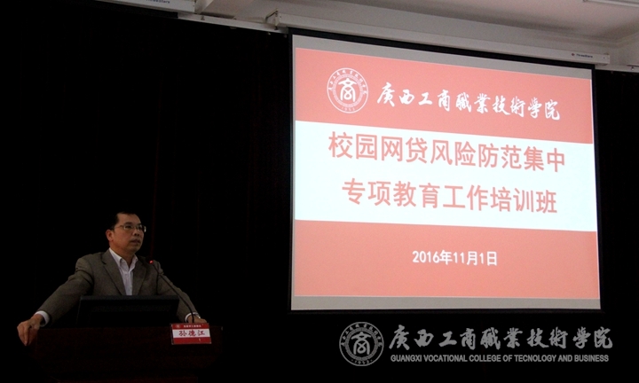 為了讓廣大師生了解校園網(wǎng)貸的危害,提高高校網(wǎng)絡(luò)信貸風(fēng)險(xiǎn)識別與防范,減少校園網(wǎng)貸對學(xué)生的不良影響,近日,我院于校本部2145學(xué)術(shù)報(bào)告廳舉辦校園網(wǎng)貸風(fēng)險(xiǎn)防范集中專項(xiàng)教育工作培訓(xùn)班。培訓(xùn)會議上,學(xué)院黨委覃武云書記從法律角度,為現(xiàn)場師生做有關(guān)校園網(wǎng)貸風(fēng)險(xiǎn)防范專題講座,陳國璋老師則從金融學(xué)角度做網(wǎng)絡(luò)金融專題講座。學(xué)院黨委覃武云書記、蒙啟成副書記出席本次培訓(xùn)會議。