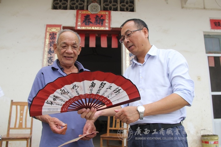 ??????? 在走訪慰問中,支部同志了解到:葉德海同志1973年加入中國共產(chǎn)黨,擁有43年的黨齡,是四樂村困難黨員的代表;何惠同志1953年出生,是村里老黨員代表,他們在四樂村黨組織的建設(shè)中作了大量的工作。蒙啟成副書記詳細(xì)詢問了老人的身體健康和家里生活情況,并握著老人的手囑咐他們一定要保重身體。最后,支部書記孫德江同志代表學(xué)生工作部黨支部為老黨員送上了慰問金,學(xué)院黨委副書記蒙啟成同志贈送了廣商院文化扇。
