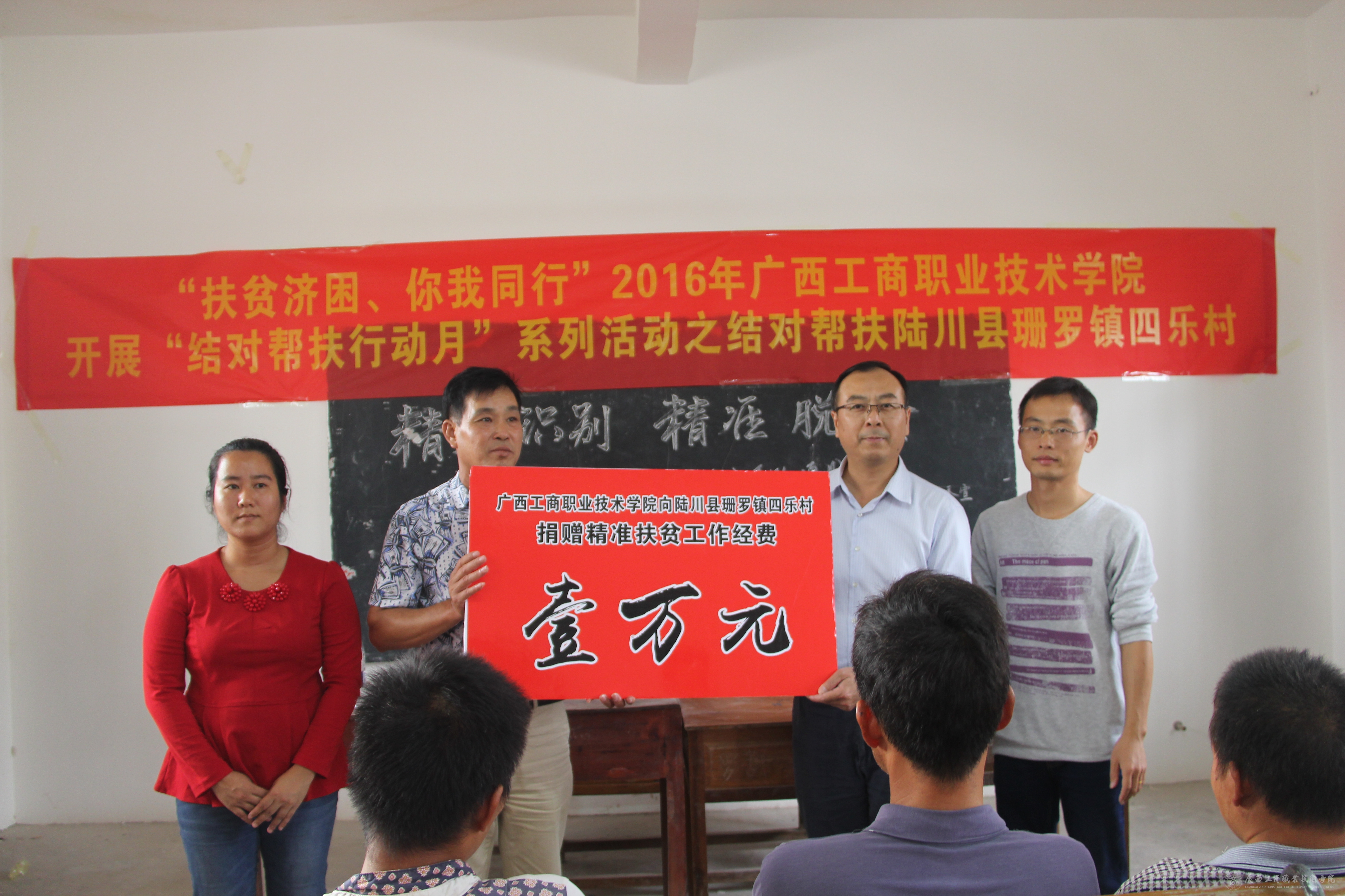 根據(jù)自治區(qū)扶貧辦、自治區(qū)黨委組織部、自治區(qū)直屬機(jī)關(guān)工委關(guān)于組織開展2016年“結(jié)對(duì)幫扶行動(dòng)月”活動(dòng)的部署和要求,2016年11月7日,我院蒙啟成副書記率黨委宣傳部、黨委學(xué)工部、公共基礎(chǔ)部組成幫扶工作小組,一行50多人,驅(qū)車前往珊羅鎮(zhèn)四樂(lè)村開展結(jié)對(duì)幫扶工作。