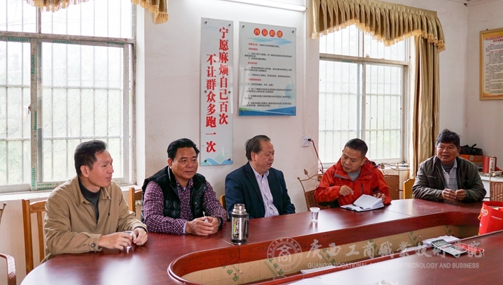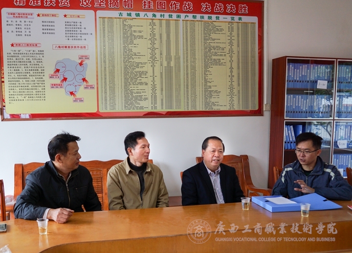 ??????? 11月23日和24日,陸川縣進(jìn)入入冬以來最寒冷的日子,寒風(fēng)夾著大雨。這一天,廣西工商職業(yè)技術(shù)學(xué)院李仕欽副院長率領(lǐng)學(xué)院 “美麗廣西”鄉(xiāng)村建設(shè)領(lǐng)導(dǎo)小組辦公室有關(guān)人員,赴陸川縣看望走訪掛職第一書記工作隊(duì)員,為他們駐點(diǎn)村精準(zhǔn)扶貧工作加油、鼓勁并做后盾和強(qiáng)支撐。李仕欽副院長一行分別到學(xué)院駐點(diǎn)的四樂村、靖西村、八角村、良村、水亭村和那若村,看望了當(dāng)?shù)貟炻毜谝粫浌ぷ麝?duì)員、了解他們的工作和生活情況,與各村村干部座談,了解精準(zhǔn)扶貧的進(jìn)展情況和存在困難。