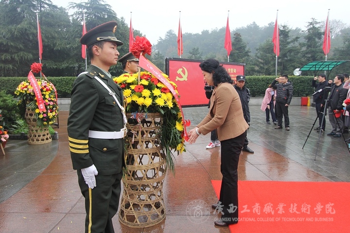 ??????? 我院思政沙龍隊(duì)伍緩步從瞻仰大道走來,在毛主席銅像前整齊列隊(duì)。伴隨著《獻(xiàn)花曲》,禮兵邁著正步護(hù)送花籃,走到毛主席銅像前并輕輕放下,現(xiàn)場(chǎng)全體人員瞻仰毛澤東銅像。在司儀的引導(dǎo)下老師和學(xué)員們緩緩向毛主席銅像三鞠躬。社科部主任劉萬英教授神情莊重走上前去,仔細(xì)地整理花籃上的紅色緞帶。我院社科部陶艷蘭老師帶領(lǐng)大家重溫入黨誓詞,并繞行一周,深情瞻仰毛主席銅像以示敬重,表達(dá)了毛主席的無限懷念和崇敬之情。
