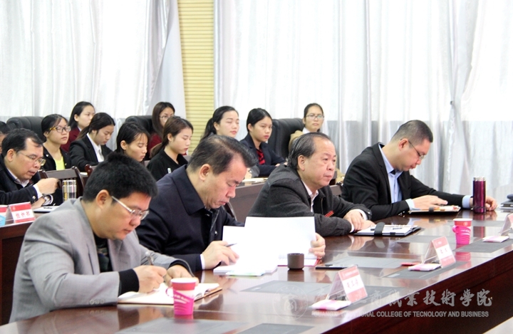 自治區(qū)糧食局辦公室主任朱其俊、學(xué)院中層領(lǐng)導(dǎo)干部、各黨總支、黨支部委員和學(xué)生代表參加了本次報告會。