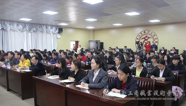 12月16日上午,2016年廣西領(lǐng)導(dǎo)干部上講臺開展思想政治教育報告會在我院校本部舉行。自治區(qū)糧食局黨組書記、局長吳宇雄同志作學(xué)習(xí)貫徹自治區(qū)十一次黨代會精神宣講報告。報告會由學(xué)院黨委副書記、院長陳杰主持,副院長李仕欽、副院長陳寧春出席報告會。