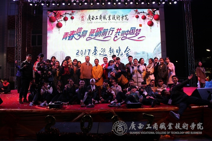 2016年12月29日晚19點(diǎn),廣商院2017年迎新晚會(huì)在校本部LED大屏幕下舉行。本次晚會(huì)以“青春信仰?砥礪前行?共圓中國夢(mèng)”為主題,學(xué)院黨委書記覃武云、黨委副書記、紀(jì)委書記蒙啟成、副院長李仕欽、副院長陳寧春出席本場晚會(huì)。各部門各單位負(fù)責(zé)人和我院師生觀看了本場晚會(huì)。