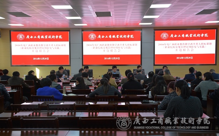 2016年12月29日下午,我院召開2016年度廣西職業(yè)教育教學(xué)改革重大招標(biāo)課題開題評議報(bào)告會(huì),由學(xué)院院長、首席專家陳杰教授主持的“職業(yè)院校常規(guī)管理應(yīng)用研究與實(shí)踐”課題順利通過開題論證。