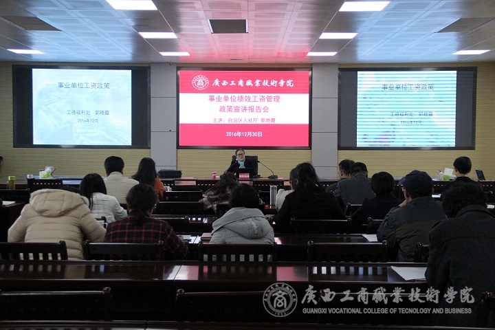 為推進(jìn)我校績效工資制度的實施工作,使全校教職員工更清楚地了解其方針、政策、實施辦法。2016年12月30日上午,我院事業(yè)單位績效工資管理政策宣講報告會在校本部召開。我院教師參加本次報告會。會議由自治區(qū)人力資源和社會保障廳廳郭艷霞處長、江河海科長主講。