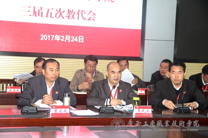 2017年2月24日,我院在校本部報告廳召開學院三屆五次教代會,學院黨委書記覃武云、黨委副書記、院長陳杰及學院領(lǐng)導班子成員、教代會代表參加了會議,學校中層干部、離退休代表列席會議,全體教職工列席了第一階段會議。