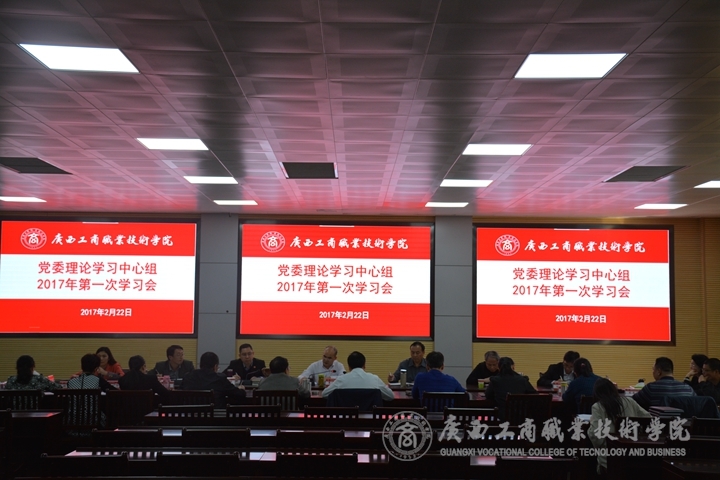 2月22日上午,學(xué)院在校本部召開黨委理論學(xué)習(xí)中心組2017年第一次學(xué)習(xí)會(huì)。黨委書記覃武云同志、黨委副書記、紀(jì)委書記蒙啟成同志、副廳級(jí)調(diào)研員黃永蓬同志、副院長陳寧春同志出席會(huì)議。學(xué)院各部門負(fù)責(zé)人、各系黨總支書記和各直屬黨支部書記、工會(huì)負(fù)責(zé)人、團(tuán)委負(fù)責(zé)人參加會(huì)議。