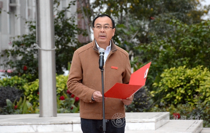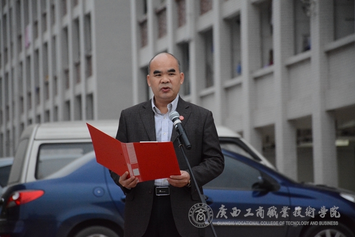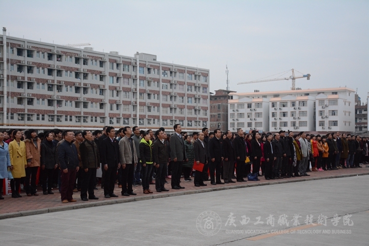 升旗儀式由學(xué)院黨委副書記、紀(jì)委書記蒙啟成同志主持,學(xué)院黨委書記覃武云同志在國旗下發(fā)表新年開學(xué)講話。