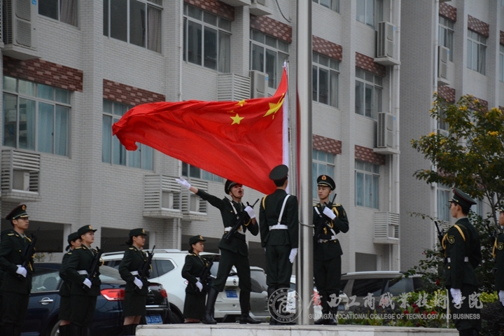 隨風(fēng)飄揚(yáng)的五星紅旗下面,覃武云同志給廣商院學(xué)子提出三點(diǎn)希望:一是希望同學(xué)們能發(fā)揚(yáng)廣商院"精工智商"的精神。勤于學(xué)習(xí),善于學(xué)習(xí),做一個(gè)勤奮好學(xué)的學(xué)生!發(fā)揚(yáng)廣商院積極向上的精神風(fēng)貌!二是希望同學(xué)們能發(fā)揚(yáng)廣商院"明德修身"的精神,做一個(gè)有道德、有修養(yǎng)、有內(nèi)涵的人。希望同學(xué)們在學(xué)習(xí)專業(yè)知識的同時(shí)也要不斷加強(qiáng)自身的思想道德修養(yǎng)。三是希望同學(xué)們砥礪奮進(jìn)。希望同學(xué)們在新的學(xué)期里要不忘初心,克服困難,勇攀學(xué)習(xí)的高峰。