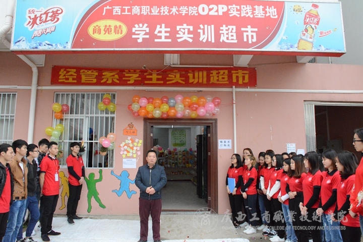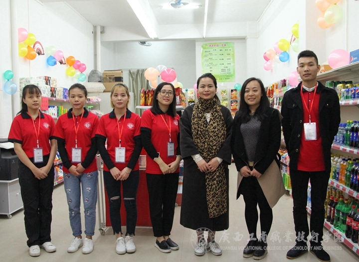 2017年3月17日上午11時(shí),位于廣商院足球場(chǎng)圍墻外的南樓商苑情學(xué)生實(shí)訓(xùn)超市隆重開(kāi)業(yè),經(jīng)管系教師黨支部書(shū)記莫春華、經(jīng)管系學(xué)生黨支部書(shū)記黃旭艷、經(jīng)管系副主任梁昕、黨委宣傳部教師莫惘、超市指導(dǎo)老師劉岳恒和經(jīng)管系同學(xué)們紛紛到場(chǎng)表示祝賀。黨委宣傳部新聞中心的記者也趕到第一現(xiàn)場(chǎng)做采訪。