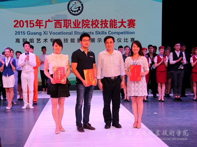 2015年4月29日下午,廣西職業(yè)院校技能大賽禮儀技能賽項在廣西藝術(shù)學院南湖校區(qū)舉行,在陶曉斌、朱克敏、梁曉霞三位老師的指導下,我院9名同學代表學校參加比賽,其中7名同學分別斬獲女子個人賽一、二、三等獎,男子個人賽兩個二等獎,兩個三等獎。我院還獲得團體賽三等獎的好成績。