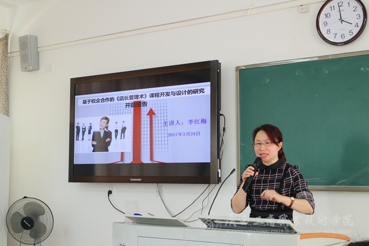 培訓(xùn)會(huì)后,接著召開(kāi)院級(jí)委托專業(yè)課課改項(xiàng)目開(kāi)題研討會(huì),教務(wù)科研處李紅梅教授以自己主持的院級(jí)委托課題為例,從項(xiàng)目研究的背景意義、主要內(nèi)容及預(yù)期成果、研究方法、研究人員和時(shí)間安排等幾個(gè)方面對(duì)院級(jí)委托專業(yè)課課改項(xiàng)目進(jìn)行了詳細(xì)的解讀,并在現(xiàn)場(chǎng)與在座的教師進(jìn)行了熱烈的討論。