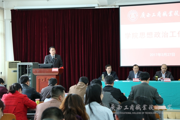 會議由院長陳杰同志主持。黨委書記覃武云同志在會上作題為“堅持正確方向 圍繞立德樹人 努力開創(chuàng)思想政治工作新局面”的學(xué)院思想政治工作會議工作報告。