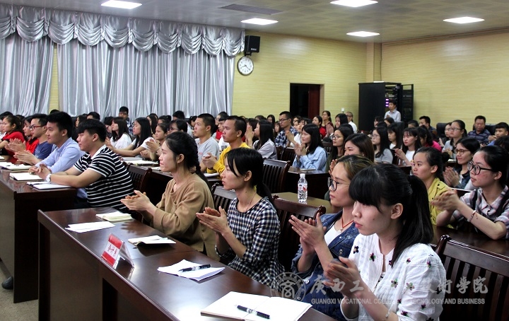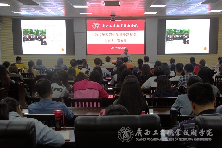 ? ? ? ? ?2017年4月25日晚上七點(diǎn)半,我院在校本部會(huì)議室開(kāi)展了2017年實(shí)習(xí)生黨員專(zhuān)題黨課活動(dòng)。黨課由學(xué)院黨委書(shū)記覃武云同志作為主講,由學(xué)生工作部部長(zhǎng)孫德江同志主持。各系的黨支部書(shū)記、副書(shū)記、學(xué)工部的全體黨員、輔導(dǎo)員、在南寧的實(shí)習(xí)生黨員、入黨積極分子現(xiàn)場(chǎng)聆聽(tīng)了該黨課。