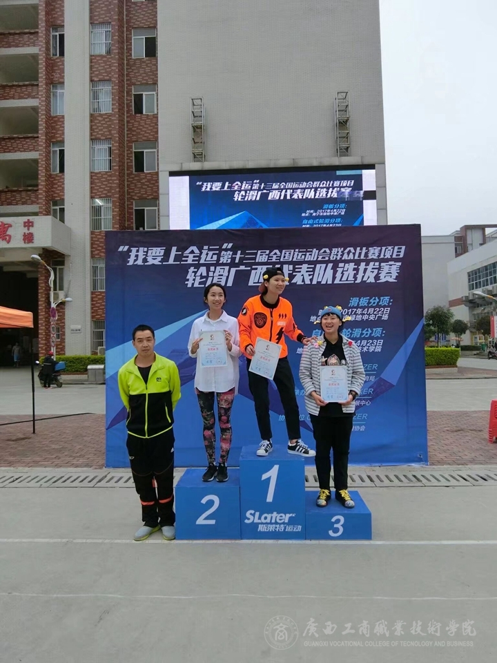 比賽結(jié)束后,主持人為獲獎(jiǎng)?wù)哌M(jìn)行簽約、頒獎(jiǎng)。值得一提的是,我校13級學(xué)生李欣遙,14級學(xué)生李蓉榮分別獲得第十三屆全運(yùn)會廣西代表隊(duì)選拔賽速度過樁第一名和第三名,代表廣西隊(duì)出征2017年第十三屆全運(yùn)會。本次比賽取得圓滿成功!