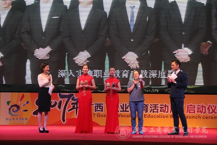 ? ? ? ? 自治區(qū)教育廳副廳長黃雄彪,自治區(qū)人力資源和社會保障廳副廳長黃智宇,柳州市副市長焦耀光,柳州市教育局局長姚尹意,柳州廣播電影電視劇副局長林明波等出席了本次廣西職業(yè)教育活動周啟動儀式,現(xiàn)場觀眾是來自社區(qū)居民、企業(yè)代表、大中小學(xué)生。
