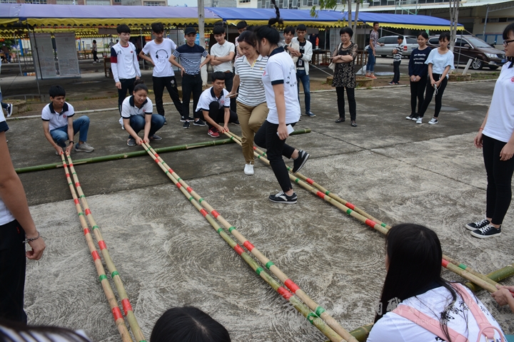 我院師生展示了具有民族傳統(tǒng)特色的竹竿舞,引來了一批觀眾和并贏得現場熱烈的掌聲。主持人還邀請現場觀眾參與互動,一同來體驗竹竿舞的魅力。
