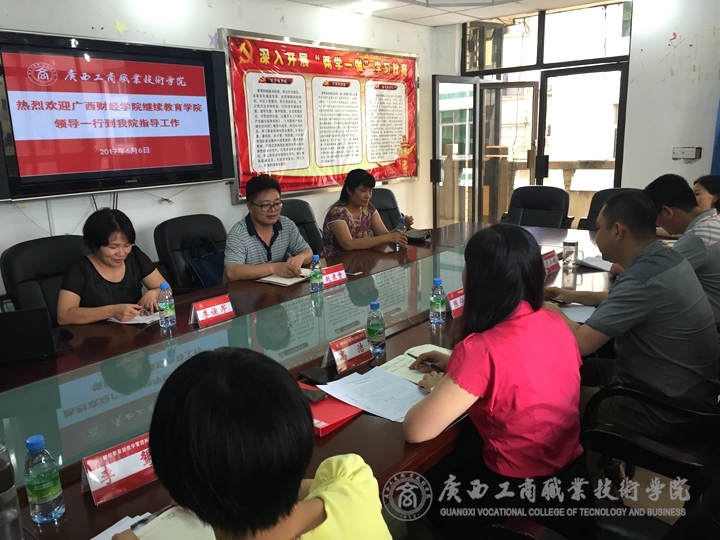 我院繼續(xù)教育部段小斌副主任和廣西財經(jīng)學(xué)院繼續(xù)教育學(xué)院自考培訓(xùn)部副主任李俊芹老師等就自考分?jǐn)?shù)比例改革后如何提高學(xué)生考試通過率以及自考專本銜接畢業(yè)情況等具體業(yè)務(wù)問題進行了交流和學(xué)習(xí)。