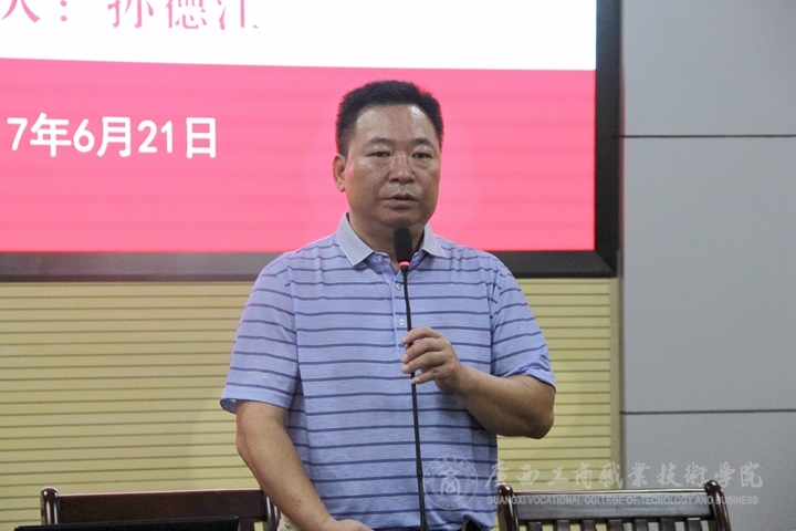 ? ? ? ? 2017年6月21日下午,我院在學(xué)院會議室開展了實習(xí)生黨員專題黨課活動。本次黨課由學(xué)院黨委學(xué)工部部長孫德江主講,由經(jīng)管系黨總支書記莫春華主持。各系黨支部代表、在南寧實習(xí)的學(xué)生黨員、學(xué)院15、16級的入黨積極分子參加了此次黨課。