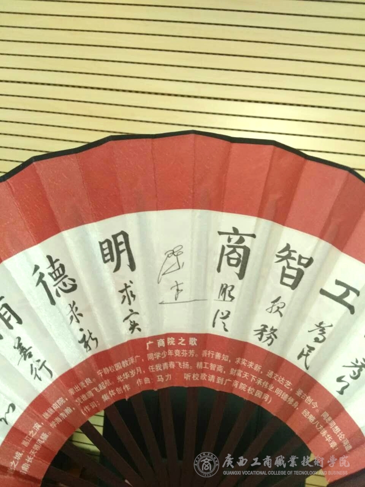 據(jù)了解,廣商院文化扇是母校贈與每一位畢業(yè)生的禮物,上面凝聚了?;?、校風(fēng)、校訓(xùn)、校歌,其題字由學(xué)生書寫并遴選勝出,每年一換。