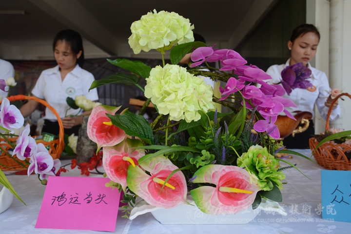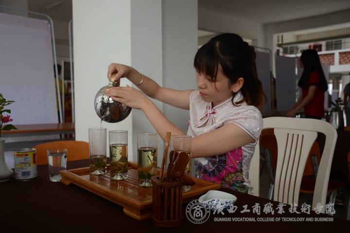 另外還有餐桌禮儀展示,展現(xiàn)了中西文化的融合。在茶藝展示過(guò)程中,技能人員表情專(zhuān)注、心態(tài)平和、認(rèn)真操作,讓圍觀(guān)的老師和同學(xué)在欣賞茶藝展示過(guò)程中去體會(huì)飲茶之樂(lè),去享受生活的美好。隨后的花藝展示中,酒管的同學(xué)們用一雙心靈手巧的手,向在場(chǎng)的觀(guān)眾展示了插花的魅力。