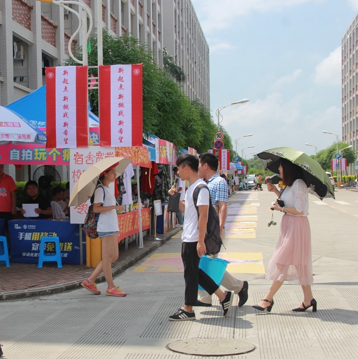 迎新工作如火如荼,到處都是忙碌的身影。志愿者們不厭其煩地為新生、家長(zhǎng)回答著他們提出的各種問(wèn)題。主動(dòng)幫著拎行李,一路談笑風(fēng)生。新生細(xì)聲地叫著“學(xué)長(zhǎng)學(xué)姐”,老生們也開心地介紹這介紹那。人頭攢動(dòng),秩序井然。來(lái)來(lái)回回的接送工作也并沒(méi)有使志愿者們懈怠于自己的工作,他們熱心的歡迎每一位新生的到來(lái),幫家長(zhǎng)學(xué)生們搬運(yùn)行李,讓剛踏入大學(xué)校園的新生們感受到了不一樣的溫暖。