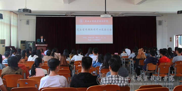 10月23日,我院黨委宣傳部新聞中心于校本部報(bào)告廳召開2017級(jí)新生見(jiàn)面大會(huì)。學(xué)院宣傳部部長(zhǎng)韋勝?gòu)?qiáng)出席見(jiàn)面會(huì),新聞中心指導(dǎo)老師莫惘、新聞中心16級(jí)成員及17級(jí)見(jiàn)習(xí)成員參會(huì)。本次見(jiàn)面會(huì)由學(xué)生部負(fù)責(zé)人李巧藝主持。
