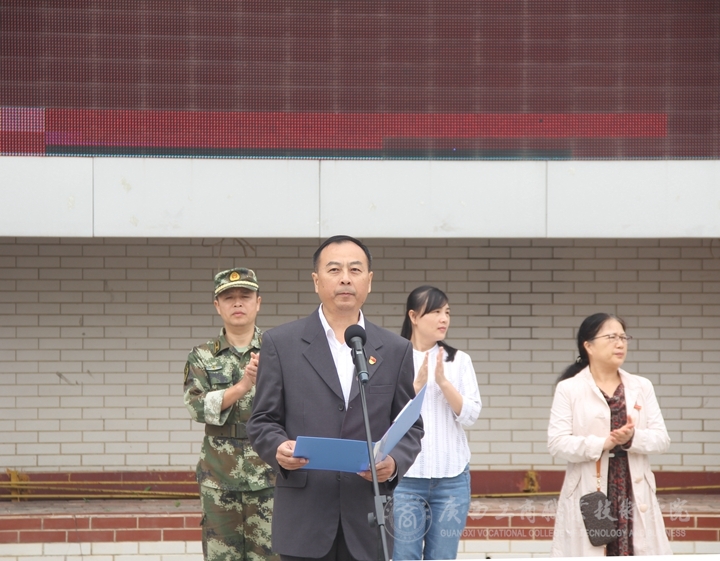 蒙啟成在講話中首先對大力支持我院軍訓(xùn)工作的武警廣西總隊直屬支隊全體教官表示熱烈的歡迎和衷心的感謝,并對所有參訓(xùn)的同學(xué)提出幾點希望:第一、要高度重視,嚴(yán)格要求。要充分認(rèn)識參加軍訓(xùn)的必要性和重要性,始終保持飽滿的熱情,嚴(yán)格按照軍訓(xùn)規(guī)范要求完成各項軍訓(xùn)科目;第二、要尊重教官,刻苦訓(xùn)練。軍訓(xùn)教官是開展軍訓(xùn)的導(dǎo)師,一定要給與教官充分的尊重;第三、要遵守紀(jì)律,聽從指揮。同學(xué)們在軍訓(xùn)期間一定要以軍人的標(biāo)準(zhǔn)要嚴(yán)格要求自己,遵章守紀(jì),令行禁止。