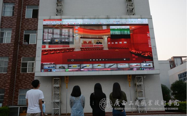 ? ? ? ?近日,在廣西工商職業(yè)技術(shù)學(xué)院校園中,處處洋溢著喜慶、和諧的氣氛,廣大師生通過(guò)食堂電視、學(xué)院led、手機(jī)、電腦等媒體,瀏覽和收看“砥礪奮進(jìn)的五年”大型成就展網(wǎng)上展館。在學(xué)院教學(xué)樓、學(xué)生活動(dòng)中心和學(xué)生宿舍中,院領(lǐng)導(dǎo)、教師和年輕的莘莘學(xué)子一起,共同感受祖國(guó)變化的視覺(jué)盛宴,增強(qiáng)民族自豪感和自信心。