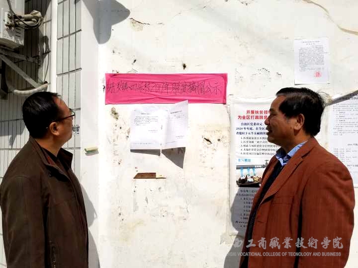 ? ? ? ? 同時(shí),黨委宣傳部、黨委學(xué)工部還將本次活動(dòng)作為本部門的黨員活動(dòng)日,由蒙啟成率隊(duì),在不打擾當(dāng)?shù)卣9ぷ鞯那闆r下,走訪調(diào)研了四樂村建設(shè)情況并參觀走訪了珊羅鎮(zhèn)鎮(zhèn)府,瀏覽了其宣傳欄、公告欄,并仔細(xì)查看了珊羅鎮(zhèn)四樂村2017年脫貧摘帽公示情況。